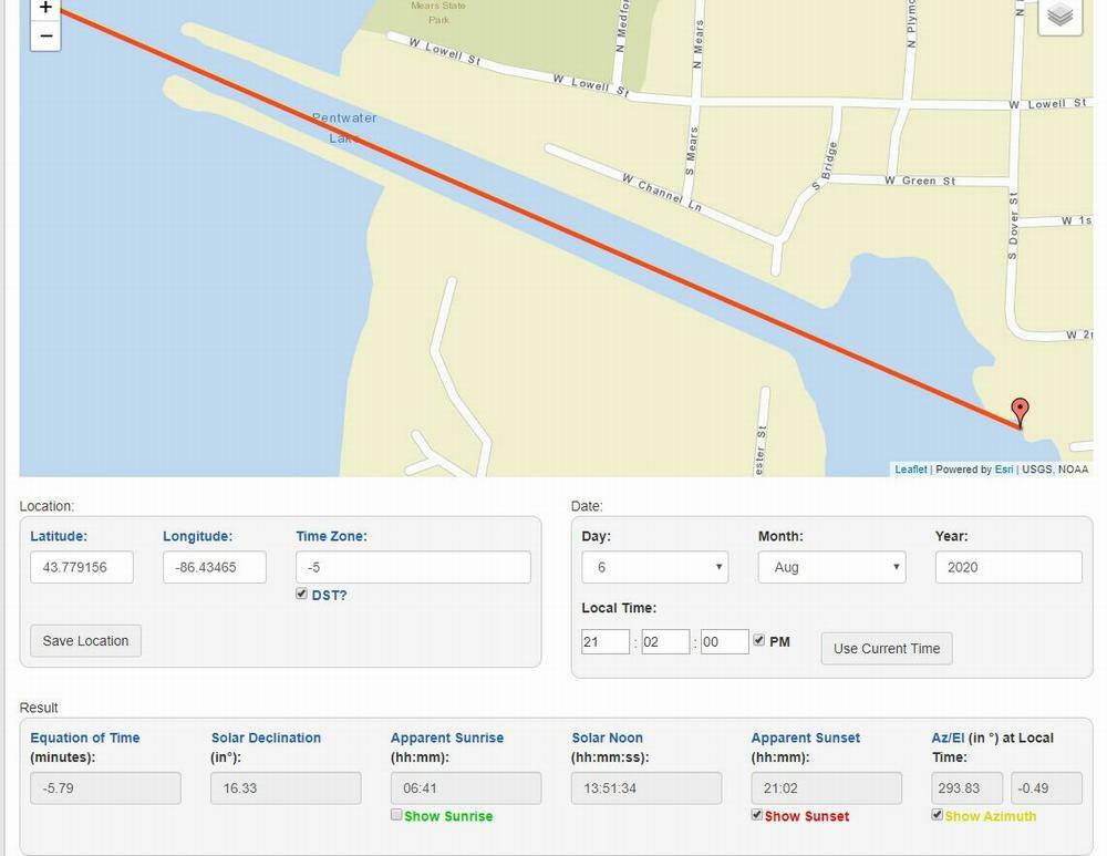 Another source of sunset/sunrise info was provided by Mike LaHaye.